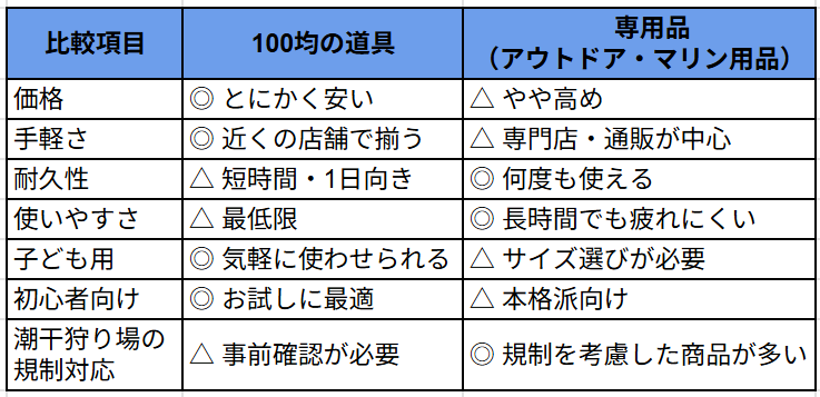 お試し感覚で使う分には100均の道具でも十分ですが、毎年行く予定がある方や長時間掘る方は、使いやすさ重視で専用品を検討してもいいかもしれませんね。