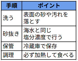 獲った貝は、持ち帰ってからの処理もとても大切です。