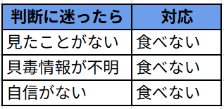 種類が分からない貝や、食べられるか判断できないものは無理に食べないのが鉄則です。