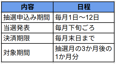 少しでも早く行きたい方は、初回抽選だけでなく4月分以降にも連続応募するのが安心です。